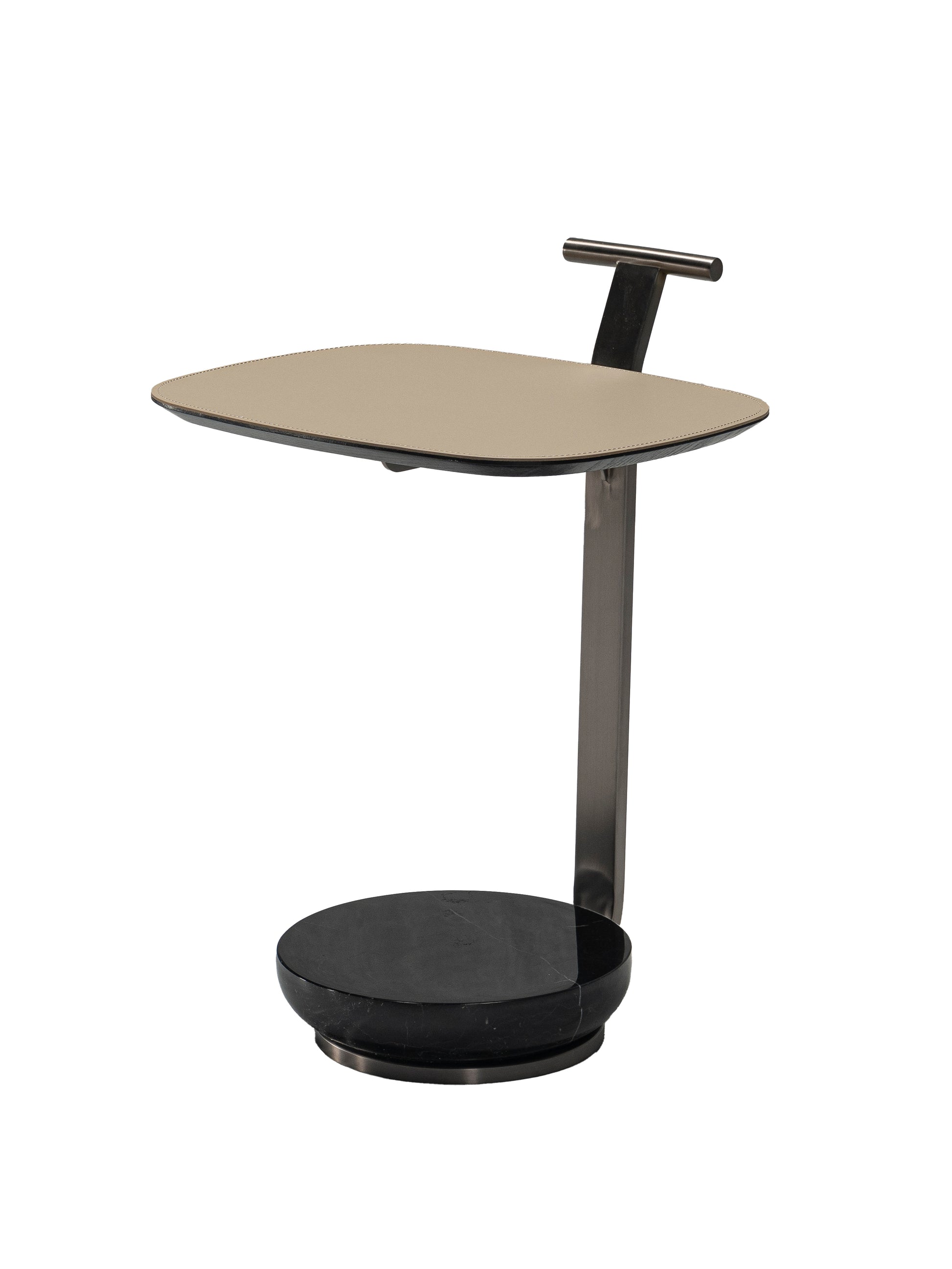 تجمع طاولة أستر الجانبية بين الأناقة والتصميم العصري، بقاعدة رخامية ولمسات جلدية وتفاصيل فولاذية. قطعة مميزة تُضفي لمسةً جماليةً على أي مساحة بجودة استثنائية وأناقة خالدة.