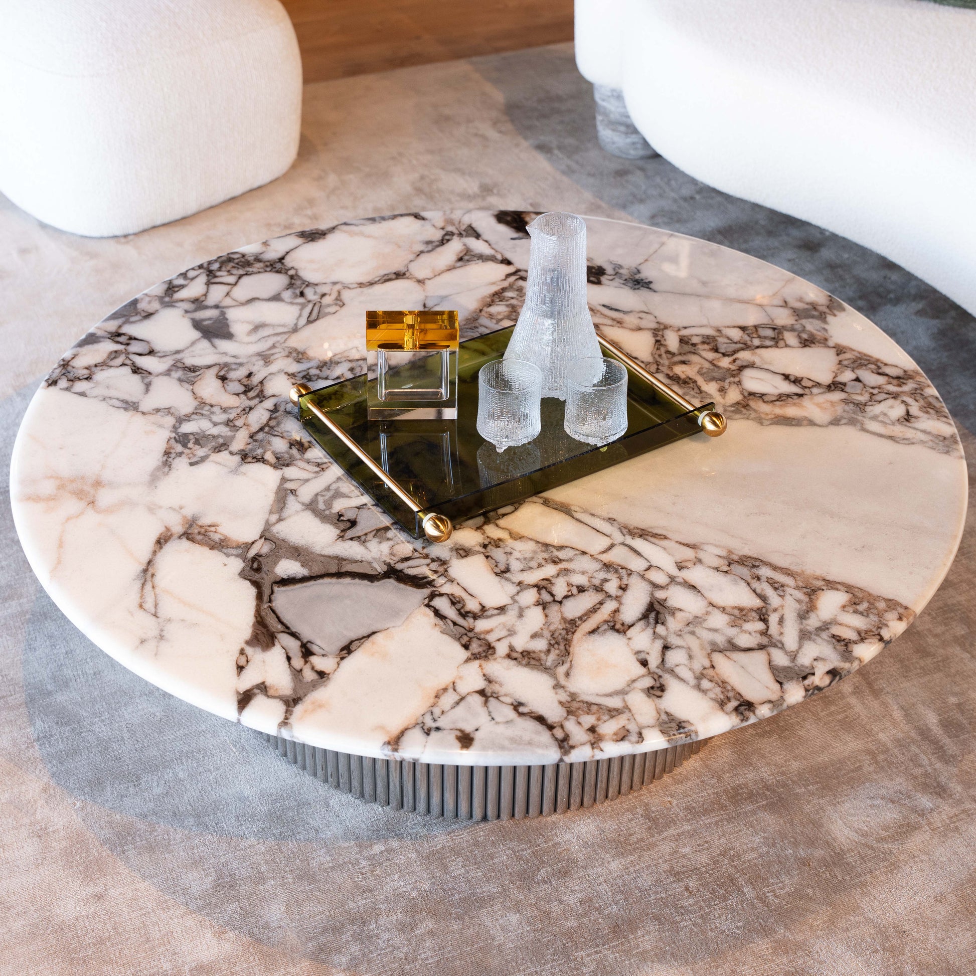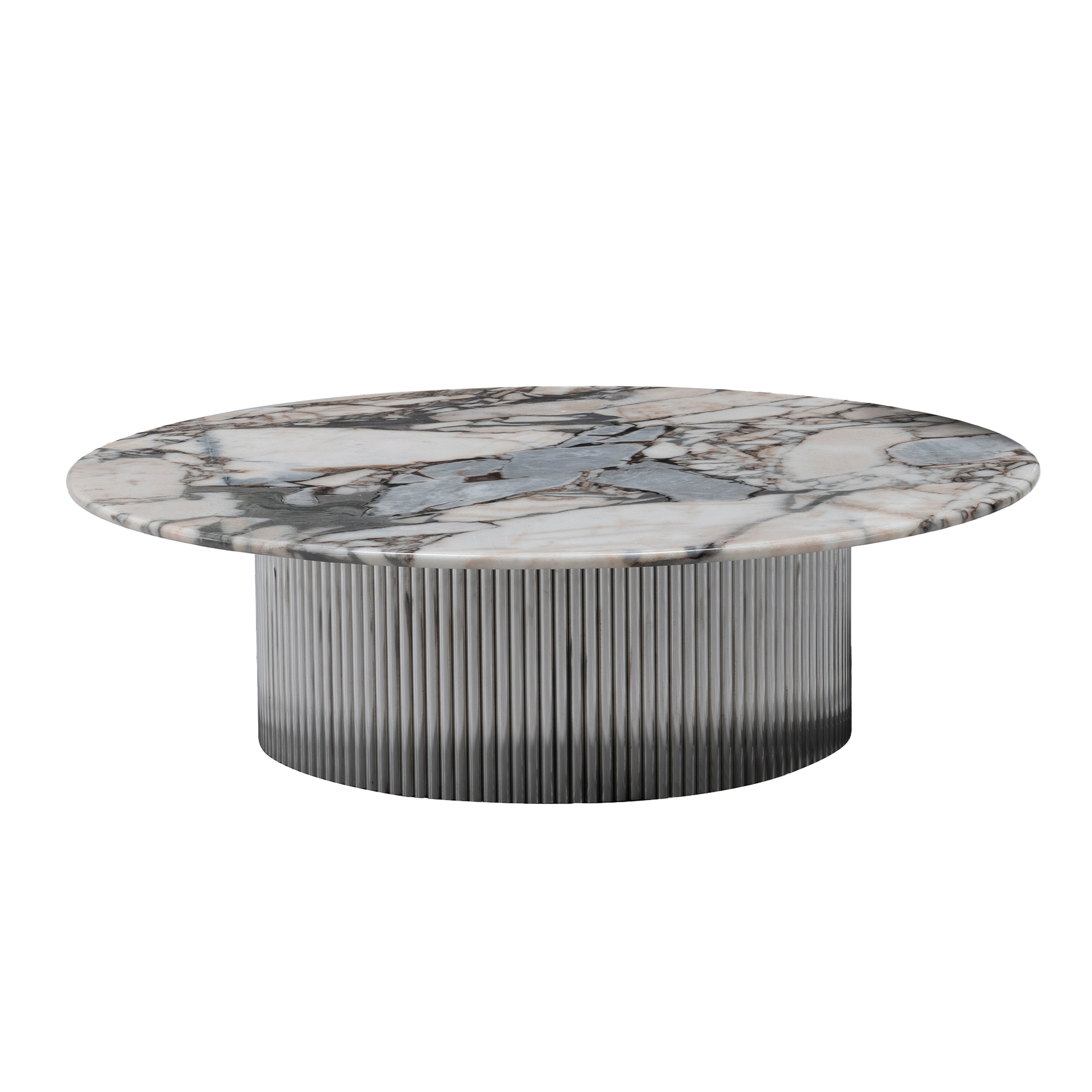 طاولة قهوة كالي تُضفي لمسةً عصريةً من الأناقة، بسطحها الرخامي الدائري وقاعدتها الفولاذية الفضية الأنيقة. قطعةٌ فنيةٌ خالدة، تُضفي جودةً وأناقةً استثنائيتين على أي مساحة.