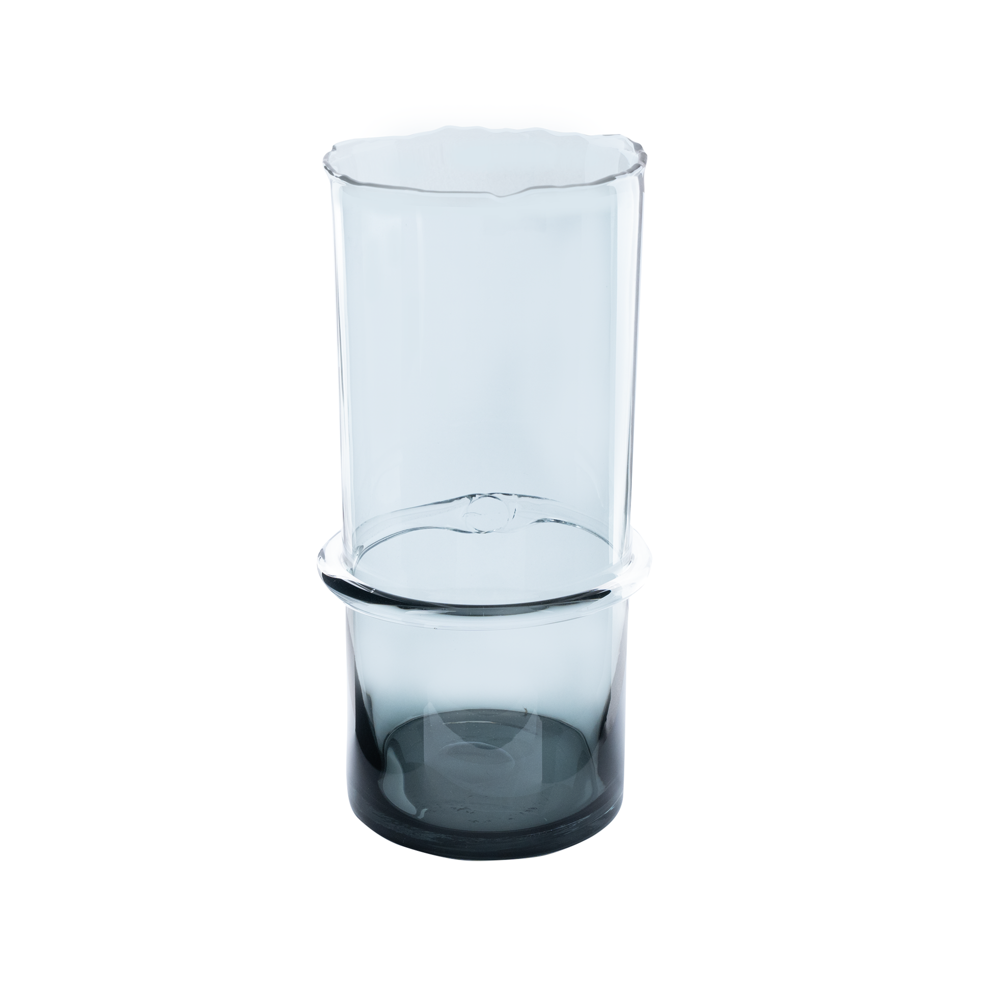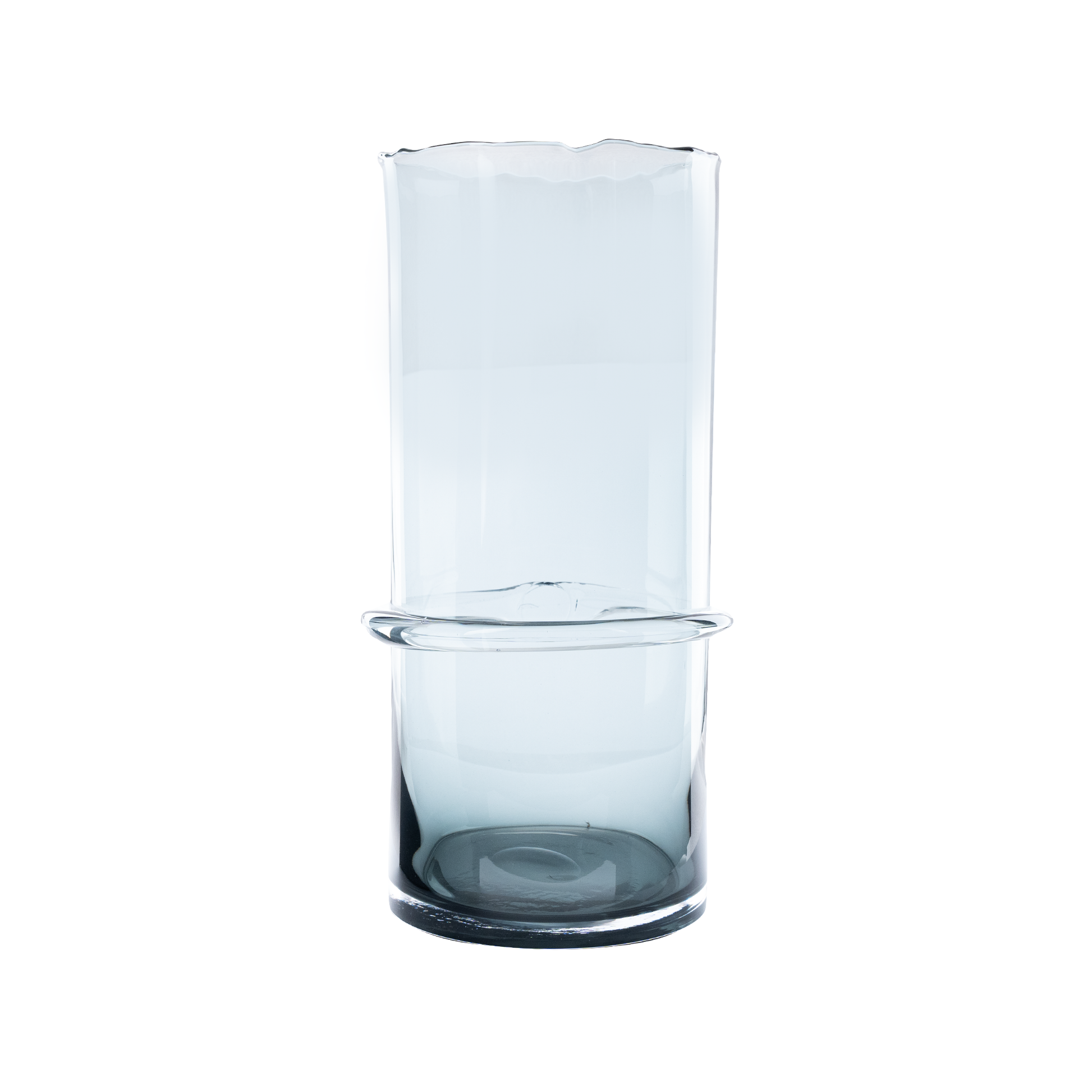 أضف لمسةً عصريةً إلى منزلك مع هذه المزهرية الزجاجية الرمادية الساحرة. قطعةٌ فنيةٌ مميزةٌ مصممةٌ لعشاق الرقيّ العصري.