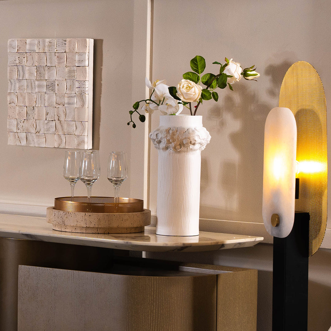 ارتقِ بمساحتك مع مزهرية إمبريسيون. صُممت هذه المزهرية لتضفي عليها لمسة من الأناقة، كما أن تصميمها العصري وجودتها العالية تجعلها قطعة مميزة تضيف لمسة من الرقي إلى أي ديكور.