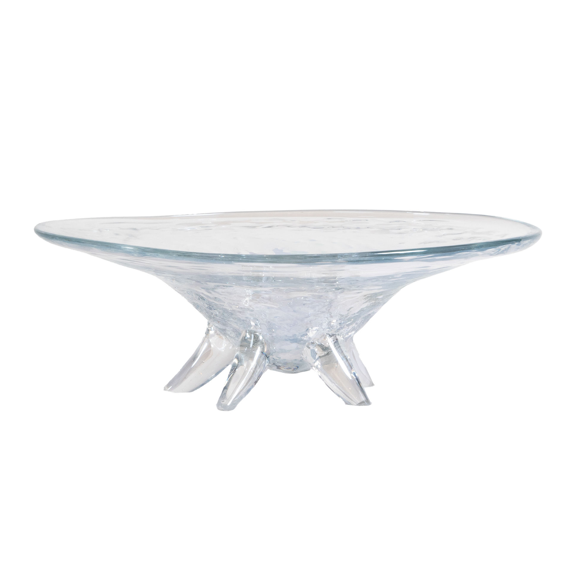 ارتقِ بتجهيزات طاولتك مع مائدة الكومبوت الزجاجية الكبيرة ذات الأرجل الخمسة المصنوعة يدويًا. صُممت هذه المائدة بتصميم عصري أنيق وذو جودة فائقة، مما يحول أي مساحة إلى مظهر أنيق.