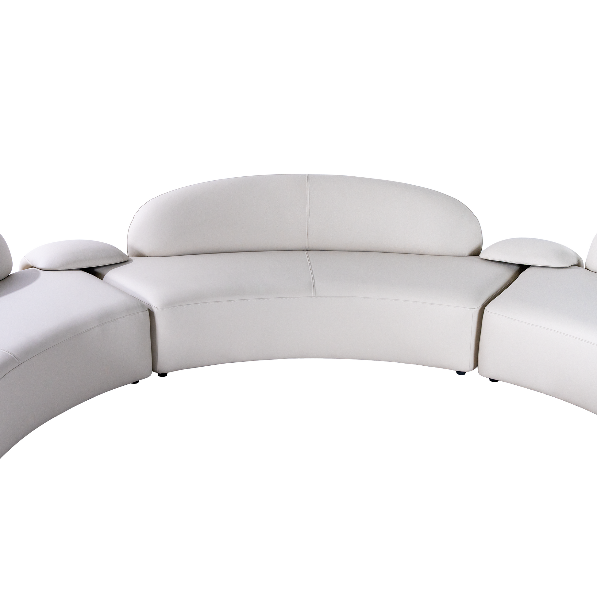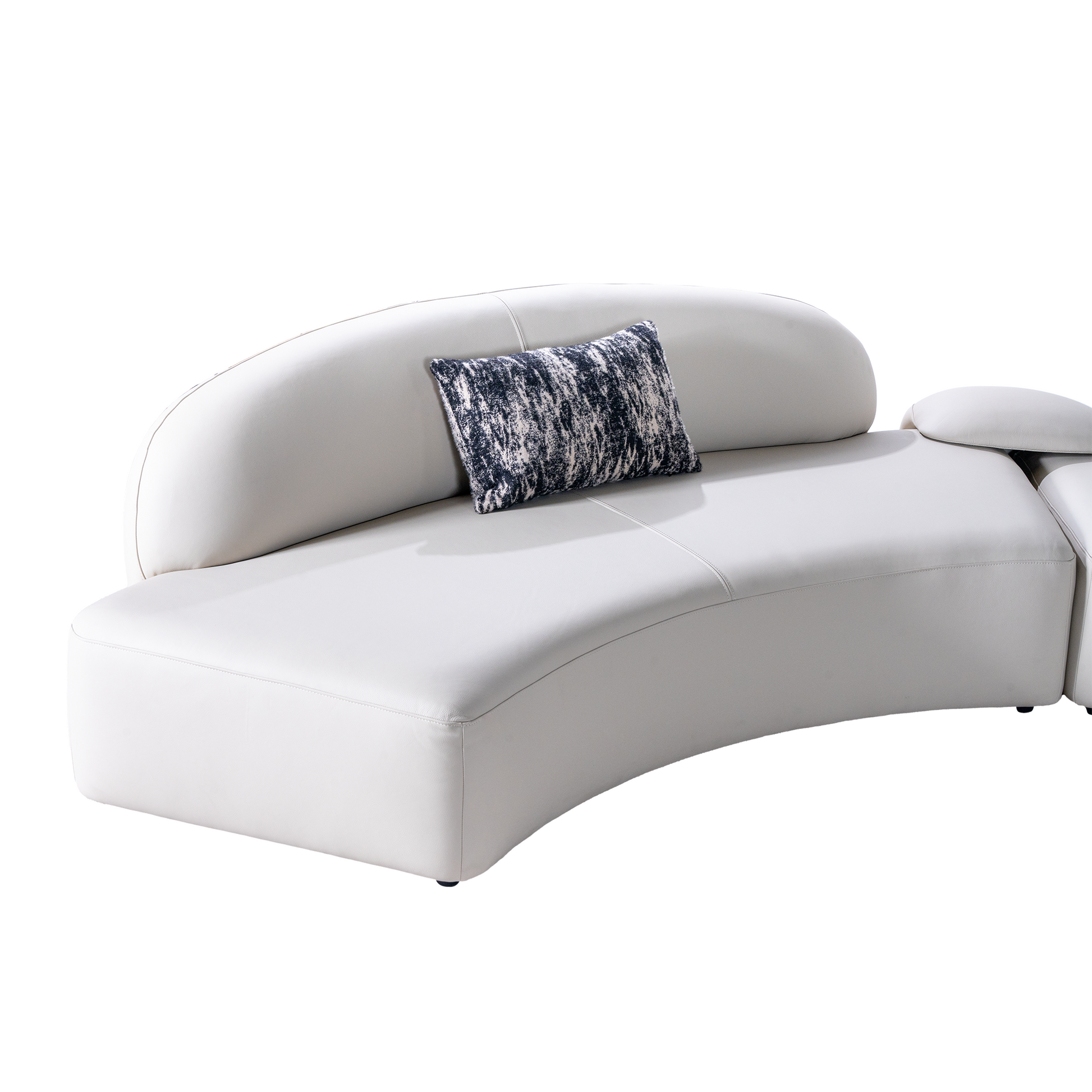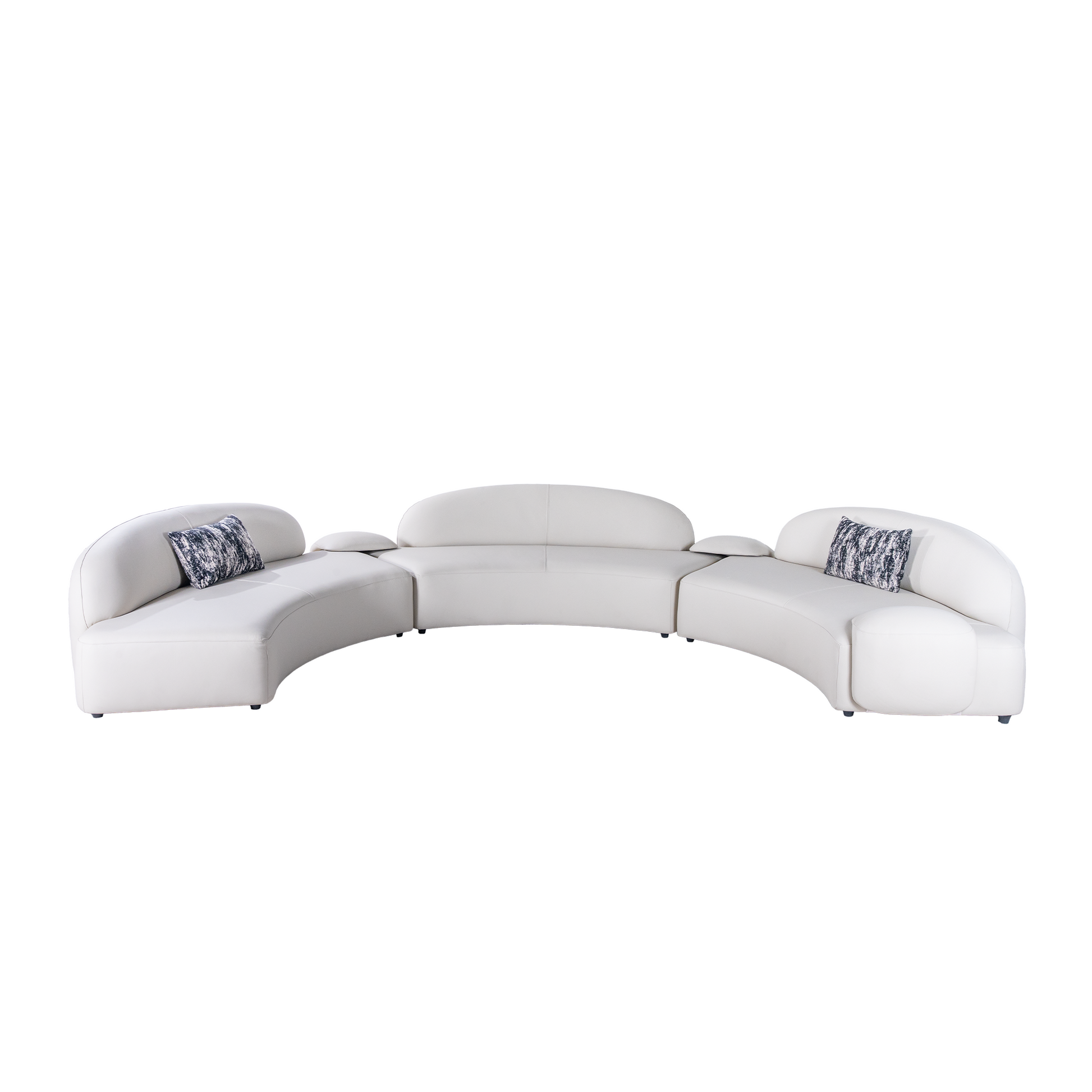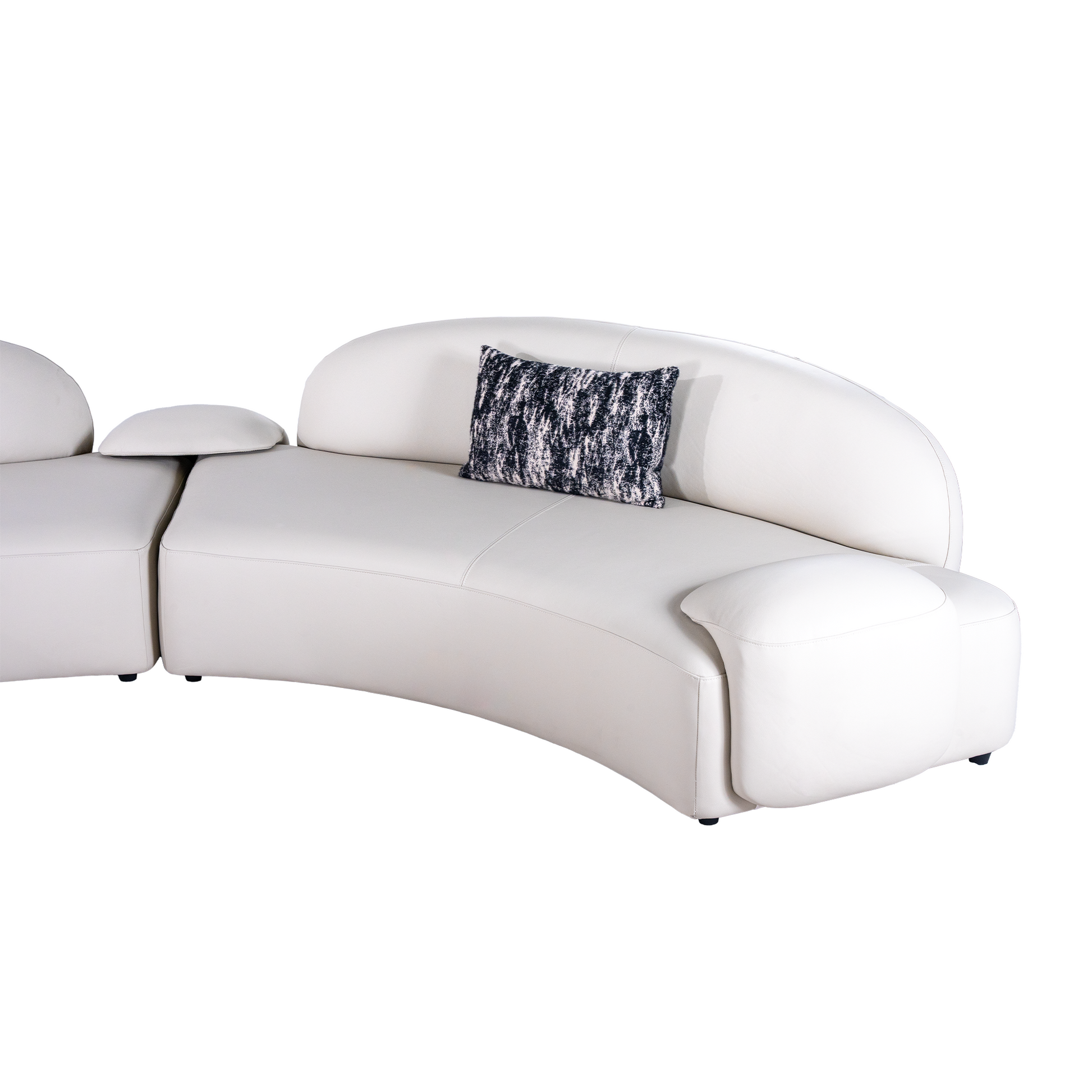 أريكة ماجي على شكل حرف U تجمع بين التصميم العصري والراحة الفاخرة في لمسة جلدية أنيقة. مزودة بوسادتين سوداوين، تُضفي لمسةً أنيقةً وواسعةً تُناسب الحياة اليومية الأنيقة.