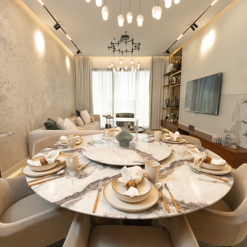 Our dedication to craftsmanship shone through in every aspect of the design process. From the strategic arrangement of furniture to the selection of bespoke wall designs, each decision was imbued with innovation and precision. Our selection of furnishings, accessories, lighting solutions, and finishes was dictated by their potential to enhance the space's intrinsic beauty.